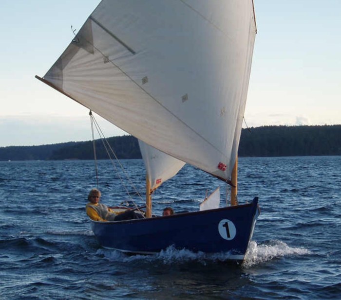 Launched in the spring of ‘02, Ratty is a 20’ Cat Ketch. Designed by Tad Roberts for his personal use, this boat was Barefoot Wooden Boats first commission.